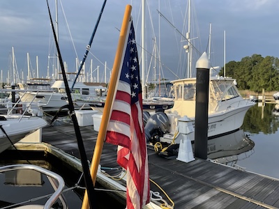 Photo: Scott Burns, 7/10/22: Wind Song, my Catalina 32, and flag in a slip on the Eastern Shore of the Chesapeake. I sold the boat and, more recently, Catalina has stopped all production and dealers for sail and power boats are going out of business.